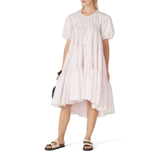 Cecilie Bahnsen Esme Midi Shift Dress 8 Tiered Short Puff Sleeve Lace Up Back Ebay